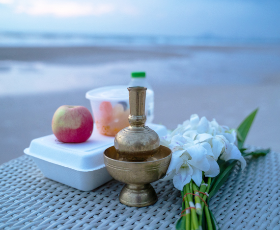 如果客人想参加,请提前1天向接待处索取篮子,以便在上午6点左右在海滩上布施。