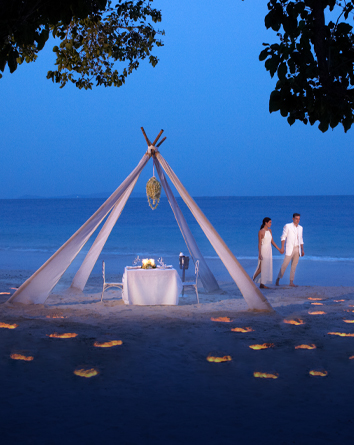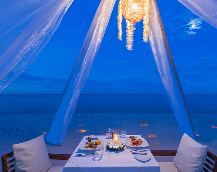 让您和亲朋好友留下一段特别的回忆,在星空笼罩的沙滩上享用浪漫的晚餐。